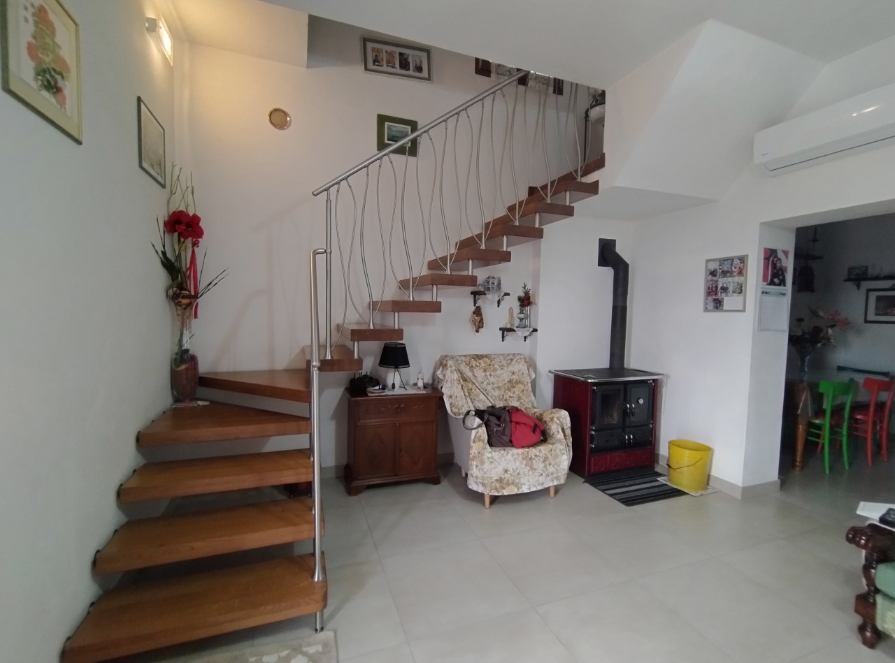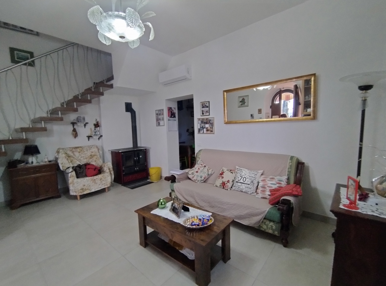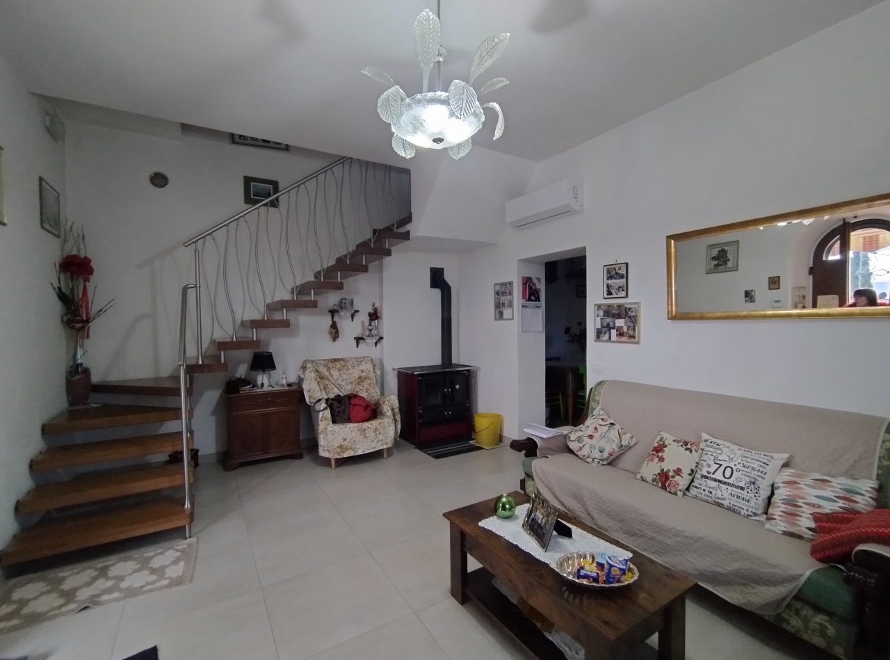 Internamente composto da soggiorno e cucina abitabile al piano terra, due camere e bagno al piano primo. Al piano seminterrato troviamo una cantina di circa 20 mq adibita a taverna.